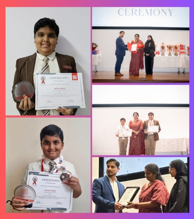 It is with great pleasure that we announce the commendable achievements of our school at the KenKen International Championship 2023. Two of our exceptional students, Aditya Rajesh from 9G and Advay Sumith from 3B have distinguished themselves by securing positions within the top 10 ranks at the Grand Finale. Their exemplary performance not only reflects positively on our institution but has also resulted in the school receiving an appreciation certificate for its commendable representation.